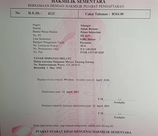 Lokasi: Jalan Sg. Labu, Sekinchan (Belakang Perumahan Taman Ria)