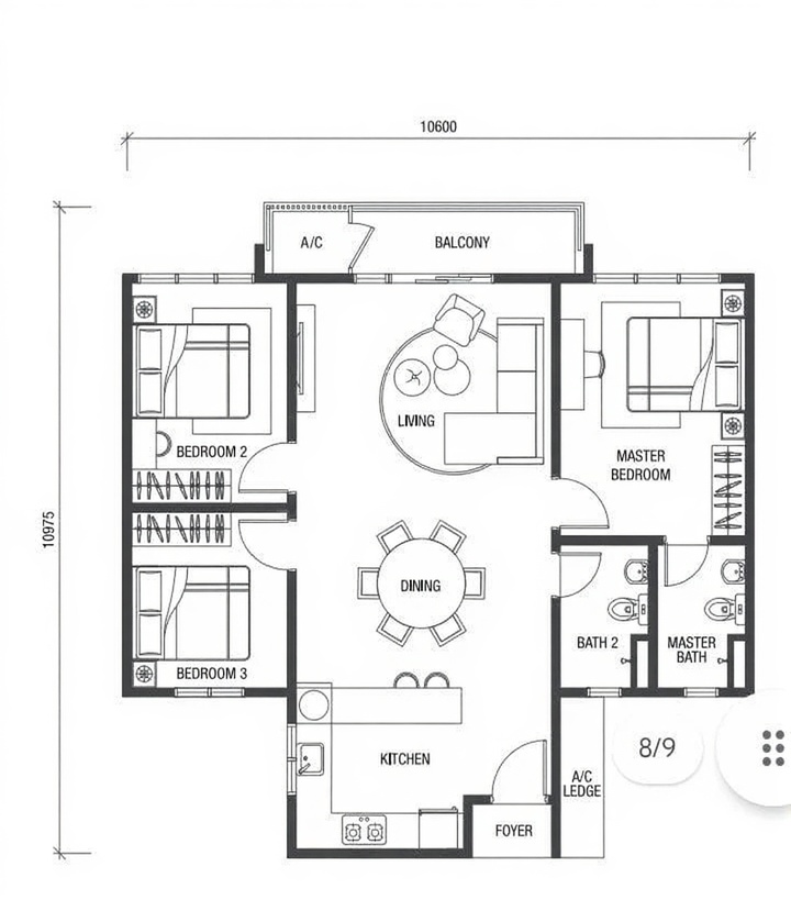 • Property Size: 1,100 sq.ft